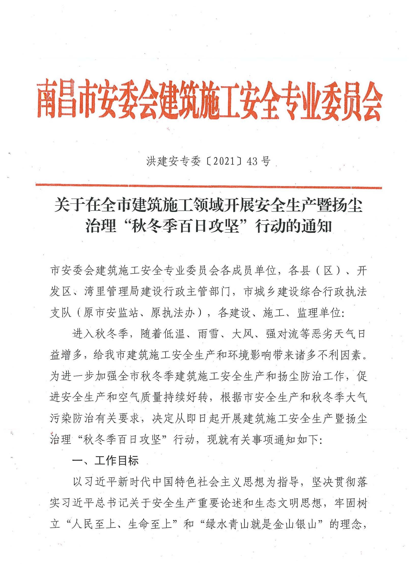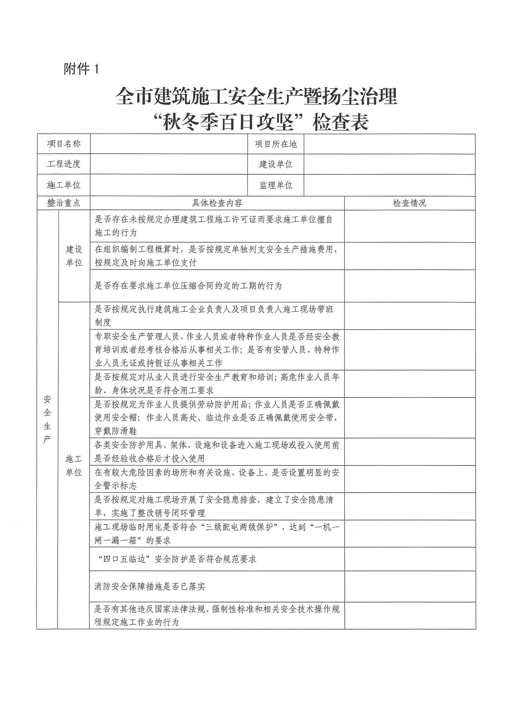 关于在全市建筑施工领域开展安全生产暨扬尘治理“秋冬季百日攻坚”行动的通知