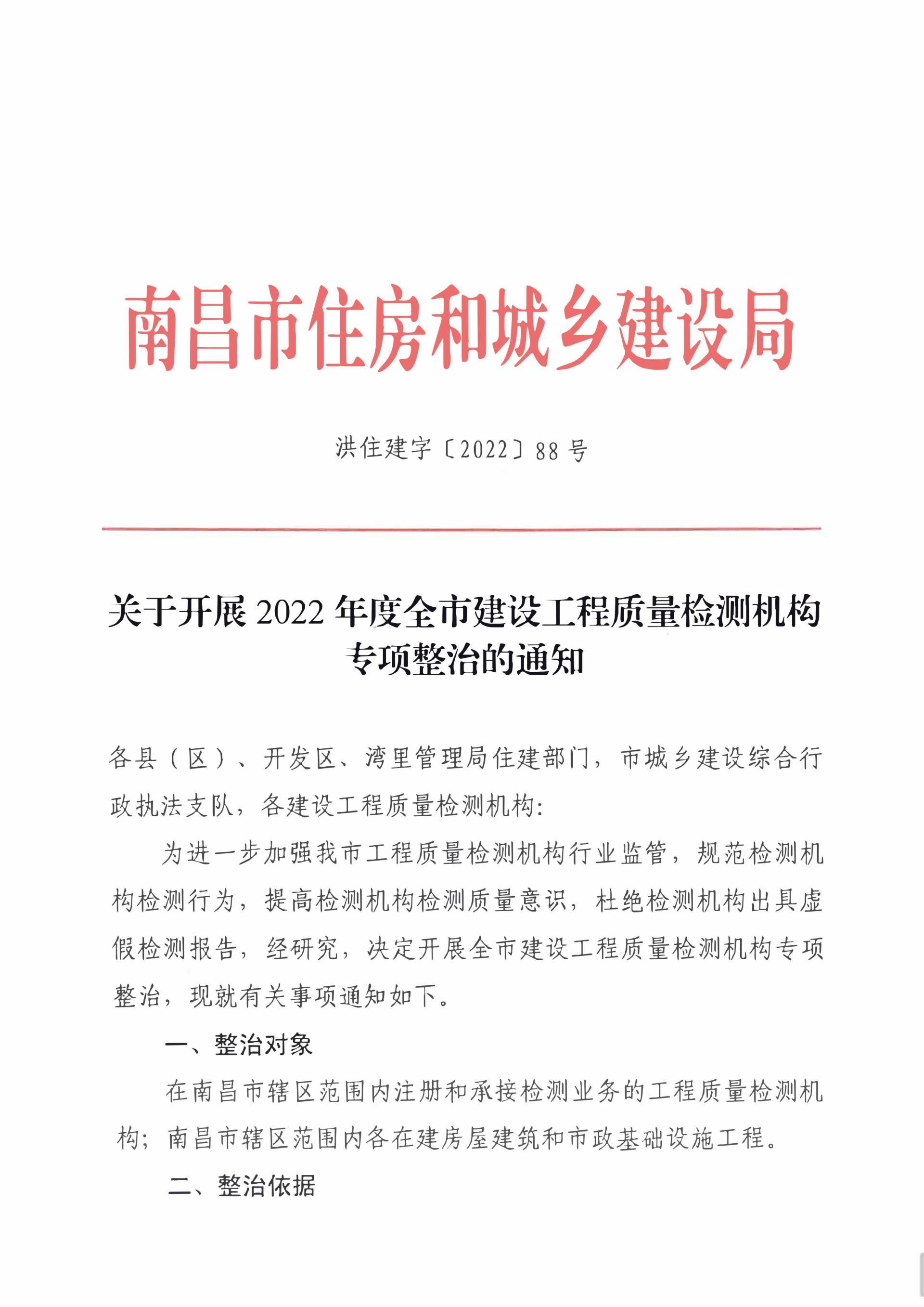关于开展2022年度全市建设工程质量检测机构专项整治的通知